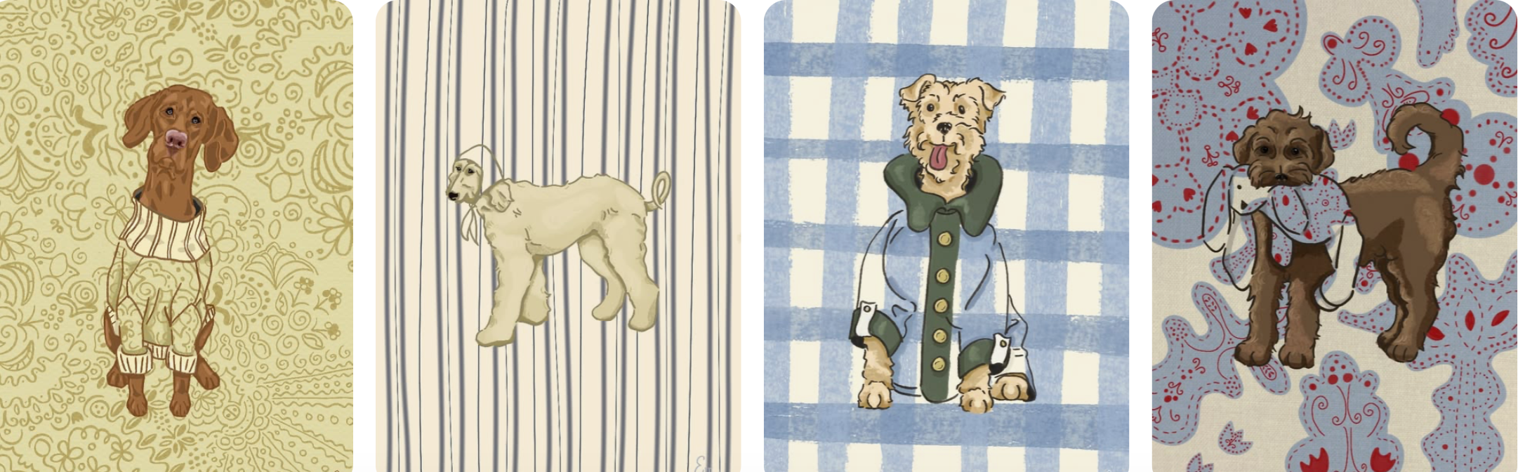 The collection “It’s a dog’s world” is a combination of my two favorite things, art and dogs.